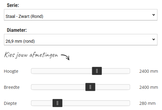 Met behulp van schuifknoppen geef je zelf de gewenste buitenmaat van het meubel aan. Let op: dit is dus niet de lengte van de buizen zelf, maar de totale afmetingen van het eindresultaat.