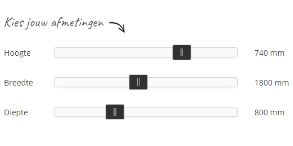 Als laatste kun je de maten ingeven. De tool rekent vervolgens direct met je mee en past de prijs gelijk aan naar jouw maten. Makkelijk toch?