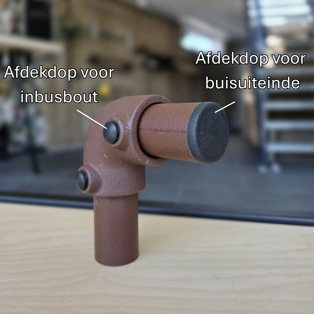 Deze dopjes klik je op de kop van een inbusbout die in een buiskoppeling is gedraaid. Ze zorgen voor een nette afwerking en voorkomen dat de bout eenvoudig losgedraaid kan worden. Ook beschermen ze tegen vuil en vocht. Deze doppen zijn klein, beschikbaar in zwart of grijs, en afgestemd op de maat van de bouten per buisdiameter. Dit type dop bespreken we in dit blog. -