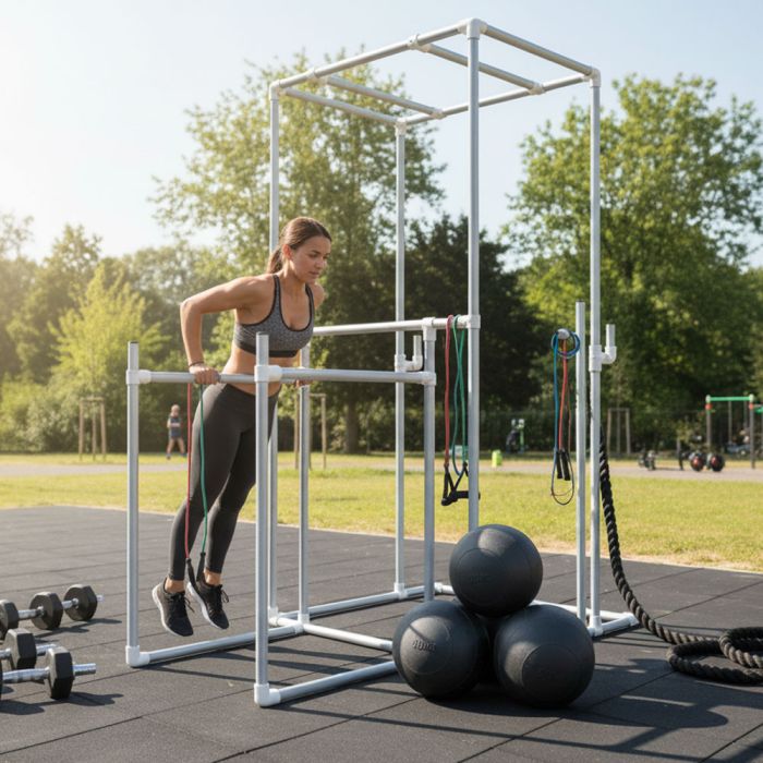 Wil jij thuis of buiten een professioneel fitness station waarmee je talloze oefeningen kunt uitvoeren? Fitness station Vancouver is dé oplossing voor sporters die een compleet en stevig trainingsstation zoeken. Dit multifunctionele station, uitgevoerd in rond staal van 33,7 mm, biedt de perfecte balans tussen kracht, stabiliteit en veelzijdigheid, ideaal voor iedereen die thuis of in de buitenlucht professioneel wil trainen.